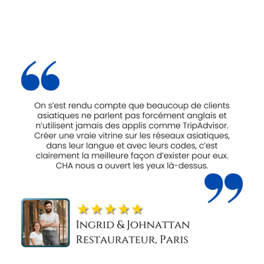 Nous adaptons vos contenus à l’audience asiatique en respectant ses codes culturels, tout en gérant l’ensemble de votre communication et en optimisant votre visibilité auprès des touristes.